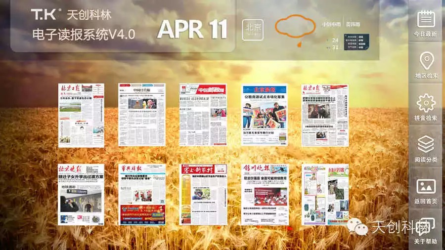 悅點觸摸屏電子讀報軟件可實現海量數據,及時存儲,300多份報紙及上千種期刊資源供選;維護方便,報源可自動更新,自動報紙檢測與更新技術能夠保證報紙及時更新并下載到各個讀報終端,確保用戶在時間看到與紙質報紙完全同步的新報紙;支持按照日期、地區、分類、報刊名稱精確檢索功能,能準確高效地獲取信息,更可以快速調出歷史報紙,方便快捷。此外,該系統軟件還具有虛擬手勢翻頁、快速版面導航、點對點畫面驅動、字體放大縮小等功能,為閱讀者帶來全新時尚閱讀體驗。