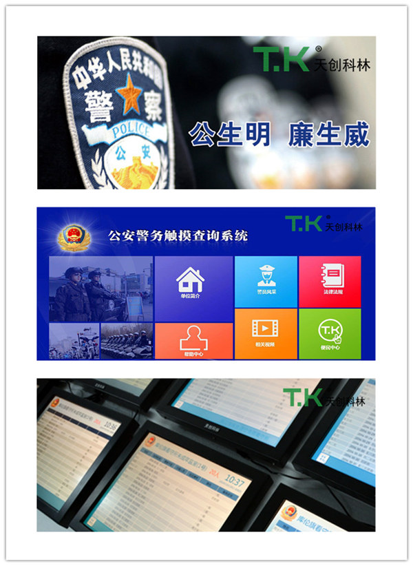 天創科林觸摸屏智慧陽光執法系統包括:機關單位警務信息查詢系統、看守所警務管理系統、訪客出入管理系統、在押人員接見叫號同屏顯示系統、看守所監倉信息及巡更管理系統、親情觸摸屏購物配送系統等。可實現警務信息透明化、預約接見規范化、監室管理智能化、執法過程人性化,提高機關單位科技化管理水平、減輕警員工作負擔,提升機關單位執法工作效率。