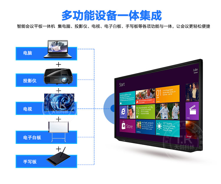 觸控教學(xué)會議體機的推出,很好地解決了傳統(tǒng)電子白板所面臨的系列問題。比如像,傳統(tǒng)電子白板搭配投影使用時,老師講課所遇到的遮擋光線問題;比如像傳統(tǒng)電子白板周邊配套設(shè)備太多,導(dǎo)致安裝時繁瑣的布線以及讓教室看起來相對不整潔;再比如像傳統(tǒng)許多電子白板書寫都要使用專用的筆等等。