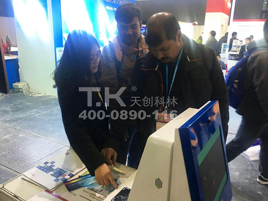 在5.1H-DB008---天創科林的展位,人潮涌動,吸引了眾多中外嘉賓駐足參觀。訪客機的現場體驗,互動、訪客機功能介紹、現場答疑......訪客機的新品亮相會受到了眾多國內外參觀人士的關注。