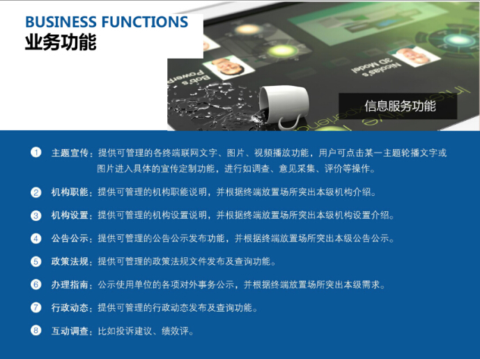 政府信息發布是政務信息服務關鍵的環,讓社區居民時間了解政務信息,政策法規、辦事流程、公告告示等政務便民信息是智慧社區系統不可或缺的組成部分。