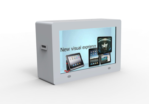 透明展示柜,應(yīng)用于智慧營業(yè)廳,展示貴金屬,提升展示物的質(zhì)感。同時在展覽物品的同時可播放廣告。