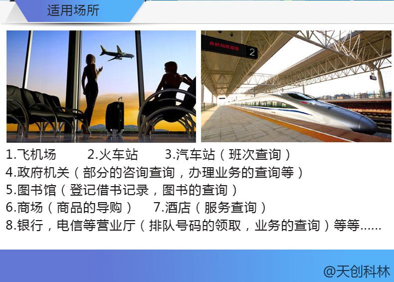 1、 自助查詢功能:可做產(chǎn)品展示、供客人查詢公司相關(guān)產(chǎn)品信息、內(nèi)容等,(適用于學校、酒店、會議展廳、展覽展示等公共場所…)