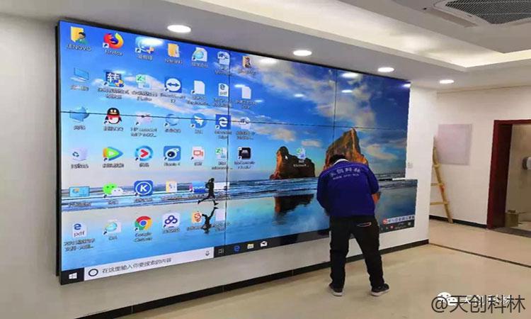 天創科林55英寸專業高清液晶拼接單元PLU-55,以3×3拼接方式打造成面大幅面高清視頻墻。該顯示系統可兼容多種信號上墻,如文檔、圖片、視頻、動畫等,并可實現全屏、開窗等靈活展示方式,充分滿足了企業形象宣傳片播放、公共信息發布等日常使用需求,并得到了企業導的高度認可。