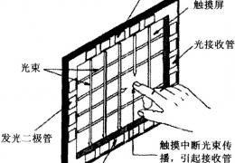 ? 紅外多點觸摸屏是利用X、Y方向上密布的紅外線矩陣來檢測并定位人的觸摸手勢的電子設備。紅外觸摸屏在顯示器的前面安裝個電路板外框,電路板在屏幕四邊排布紅外發射管和紅外接